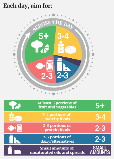 - It is important to consume at least 1.5-2 cups of fruits, 2-3 cups of vegetables, 3-6 servings of grains, 0.75 grams of protein, and finally, 3 cups of dairy.